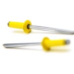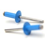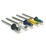 The color rivet has an aluminum head colored with epoxy paint. Its main objective is to unify the color in the riveting surface. It is applied in all type of materials and it is used by diverse industries such as electro mechanics, bodywork, furniture, appliances, etc. Black and white rivets are in permanent stock, the rest of the colors are elaborated according to the user’s need.